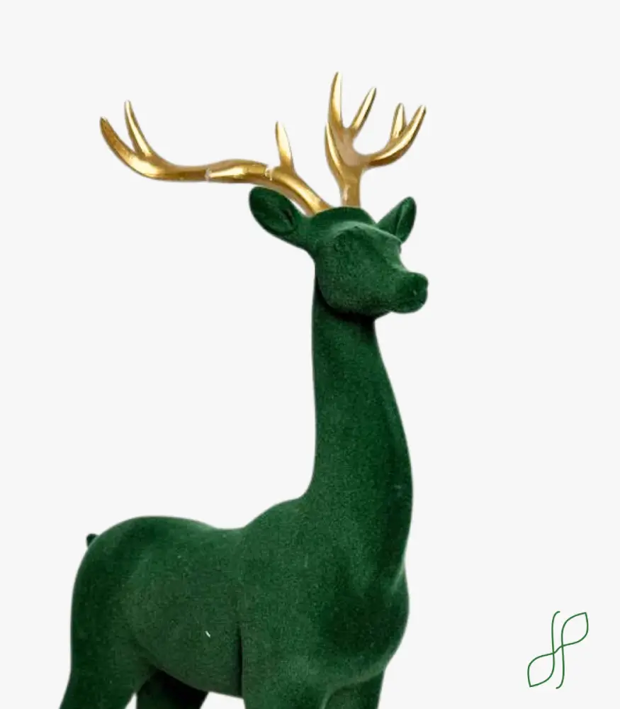 Cervo in velluto verde con corna color oro