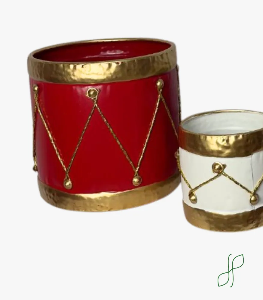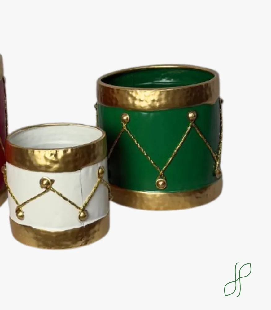 Tamburo in latta Grande in Rosso, Medio in Verde e Piccolo in Bianco