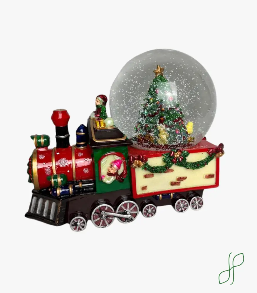 Treno natalizio con sfera scende neve
