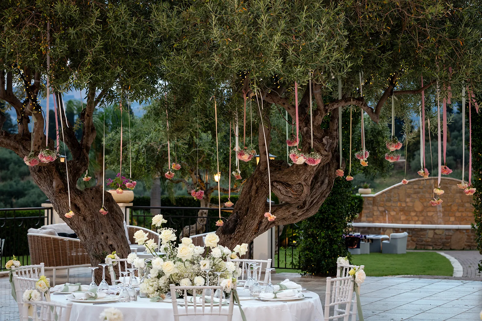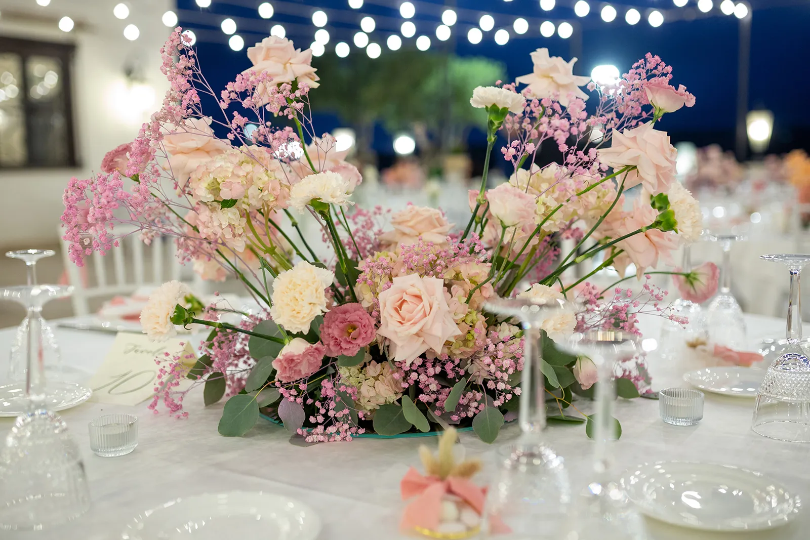 Bouquet, centrotavola e decorazioni seguono questa filosofia cromatica, creando un'atmosfera poetica e sofisticata che riflette l'unicità dell'amore di Alessandro e Gaia.